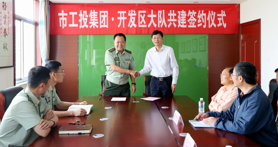 5月25日,集團(tuán)公司與市開發(fā)區(qū)消防大隊(duì)簽訂“雙聯(lián)共創(chuàng)”協(xié)議,雙方將圍繞“兩學(xué)一做”學(xué)習(xí)教育、崗位互換交流、消防培訓(xùn)業(yè)務(wù)交流等方面開展警企共建互動(dòng)。集團(tuán)公司公司副總經(jīng)理張其海、市開發(fā)區(qū)消防大隊(duì)教導(dǎo)員王正強(qiáng)、大隊(duì)長(zhǎng)公浩等出席簽約儀式。