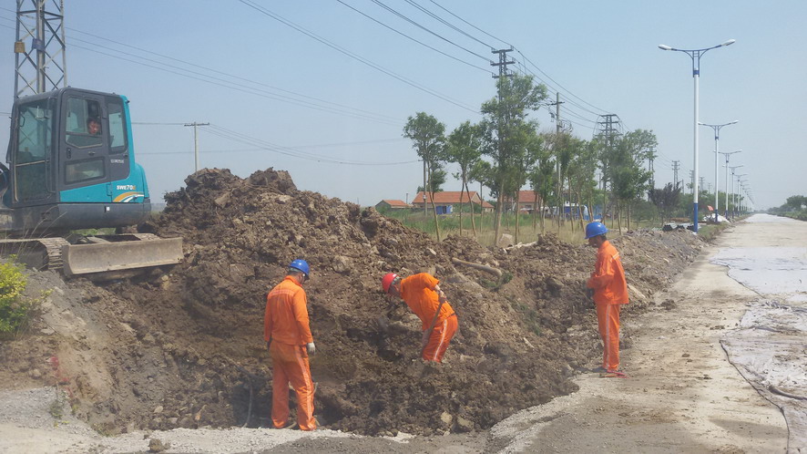 近期因大浦路翻修改造,挖掘機等大型施工器械一不小心就可能將路燈電纜挖斷,造成路燈無法正常工作,該路段的路燈故障時有發(fā)生。當日上午,維修組電工對該路段的一處路燈故障段進行檢查,找出原因并修復,按照工作流程,來到路燈故障路段后,他們首先進入位于綠化帶內的路燈控制箱內進行檢查,雖然檢查前后只用了不到半小時的時間,但是身穿長袖工作服,頭戴安全帽,手帶絕緣手套,在如此悶熱的條件下進入狹小的空間作業(yè),汗水瞬間從每個毛孔中冒出,不一會他們的頭發(fā)和上衣就已濕透。上有烈日炙烤,下有蒸騰的熱浪,每個人的臉上都掛滿了汗珠,剛一擦拭完,汗水重又“涌出”,并順著臉頰滴向地面。在強光的照射下,長時間半蹲后起身,讓人不免產生眩暈的感覺。