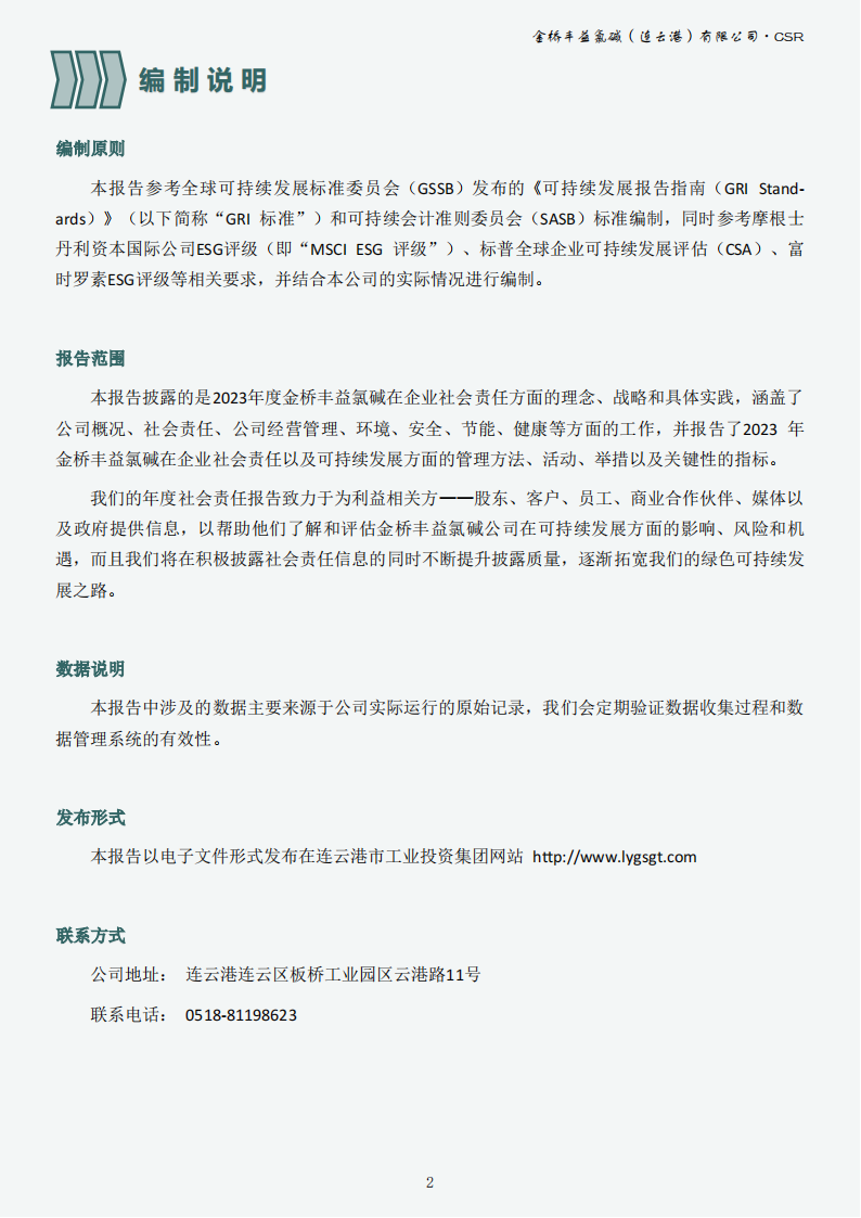 金橋豐益氯堿(連云港)有限公司2023年可持續(xù)發(fā)展報(bào)告公示