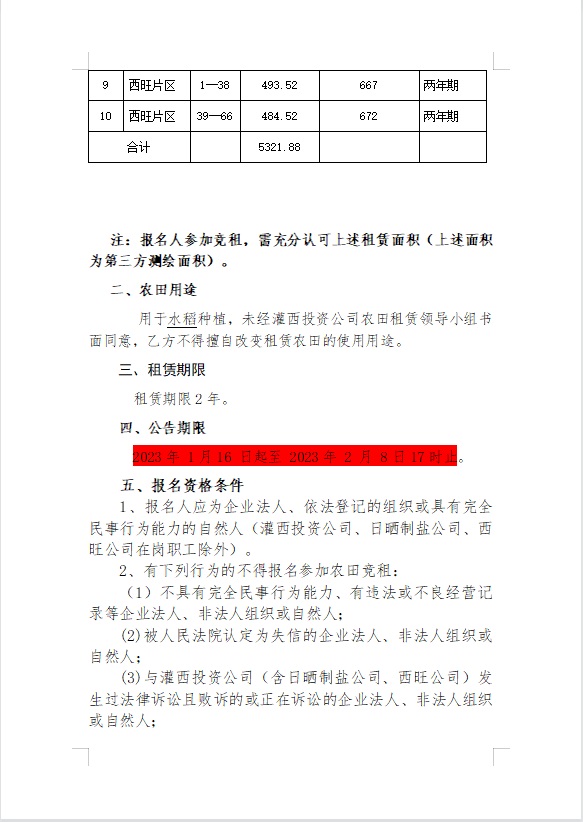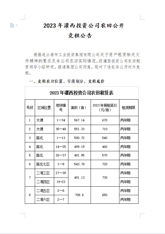 2023年灌西投資公司農(nóng)田公開(kāi)競(jìng)租公告