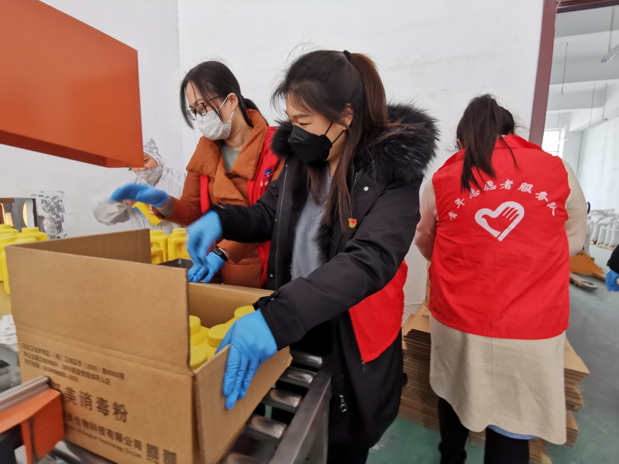 在得知美多利科創(chuàng)園入園企業(yè)永榮生物公司有一批緊急運(yùn)往武漢的消毒粉訂單,工人緊缺的信息,臺北公司青年突擊隊(duì)第一時間奔赴生產(chǎn)現(xiàn)場,“發(fā)放、裝車、運(yùn)輸”,分工合作,保證效率,確保產(chǎn)品及時發(fā)送,助力戰(zhàn)“疫”一線。
