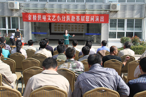 近日,為慶祝建國(guó)65周年,進(jìn)一步踐行黨的群眾路線(xiàn),豐富基層職工文化生活,公司工會(huì)組織文藝小分隊(duì)深入供電所等基層單位巡回慰問(wèn)演出,為一線(xiàn)職工送去精彩紛呈的“文化大餐”,贏得了基層職工群眾一致好評(píng)。 在臨時(shí)搭建的舞臺(tái)上,文藝小分隊(duì)自編自演的的歌舞、相聲、詩(shī)朗誦、器樂(lè)彈唱等豐富多彩的節(jié)目,貼近基層,貼近生活,謳歌金橋供電十年成就,展示金橋供電職工風(fēng)采,贏得了現(xiàn)場(chǎng)觀(guān)眾陣陣掌聲。中間還穿插了擊鼓傳花觀(guān)眾互動(dòng)節(jié)目,基層職工踴躍參與,氣氛活躍。最后,演出在會(huì)場(chǎng)全體人員齊唱《歌唱祖國(guó)》中圓滿(mǎn)落下帷幕。 公司自成立以來(lái),一直注重企業(yè)文化建設(shè),利用多種形式活躍基層文化生活,滿(mǎn)足員工多層次、多角度的精神需求。不僅加強(qiáng)基層單位“職工小家”建設(shè),建立了“職工書(shū)屋”、職工活動(dòng)室、乒乓球室、羽毛球活動(dòng)場(chǎng)地等基礎(chǔ)設(shè)施,還舉辦了職工運(yùn)動(dòng)會(huì)、籃球賽和文藝演出等活動(dòng)。不僅發(fā)揮傳統(tǒng)職工文化活動(dòng)的優(yōu)勢(shì),而且還創(chuàng)新具有時(shí)代特色文化活動(dòng)的形式,不斷增強(qiáng)員工的凝聚力和向心力。通過(guò)本次深入基層慰問(wèn)演出,不僅為戰(zhàn)斗在一線(xiàn)的基層職工獻(xiàn)上一份精神“大餐”,同時(shí)也展示了金橋供電的良好作風(fēng)和企業(yè)形象。(趙艷)