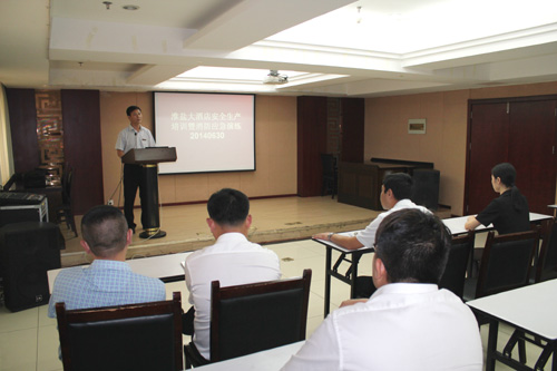 安全宣教一著不讓。該酒店組織全體員工觀看安全事故教育警示片,宣傳安全生產(chǎn)知識,提高員工安全生產(chǎn)意識,營造“安全生產(chǎn)月”濃厚氛圍?;顒悠陂g,共召開安全會議2次,下發(fā)文件2份,集中安全培訓2次,開展消防應急演練1次。