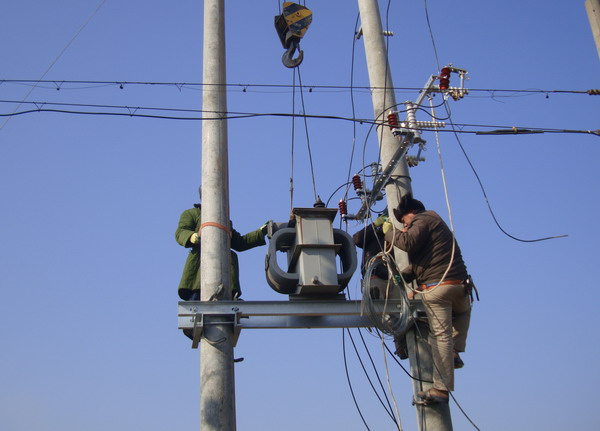 黃化制鈣公司居民區(qū)已有三十多年歷史,目前居住400多戶居民。由于使用年久老化,變壓器容量小、供電半徑大,線路長、線徑細(xì),電壓不穩(wěn),供電效率低。加上居民生活水平提高,用電量增加,供電矛盾日益突出,嚴(yán)重影響空調(diào)、冰箱等家用電器正常使用,居民意見很大。考慮到這項(xiàng)工程需投資資金較大,而老居民區(qū)情況復(fù)雜、經(jīng)濟(jì)上大多比較困難,為快速化解居民用電矛盾,讓他們過上祥和、舒心的春節(jié),臺北供電所自籌資金,領(lǐng)導(dǎo)親自到現(xiàn)場勘察,擬定整改方案。該所人員全部出動,雇用工具車三臺、吊車兩輛,運(yùn)送一臺100千伏安變壓器、兩個(gè)配電箱和10根電桿,自帶導(dǎo)線等材料趕赴施工現(xiàn)場。在居民的支持和配合下,克服了巷口復(fù)雜、圍墻歪斜、樹枝凌亂、布局很不規(guī)則等困難,奮戰(zhàn)多日,安裝一臺新變壓器,將原來的一條線進(jìn)入改為三條線進(jìn)入,增加供電功率,擴(kuò)大供電容量。通過進(jìn)戶測試,均達(dá)到用電標(biāo)準(zhǔn),給居民帶來了冬天的溫暖。
