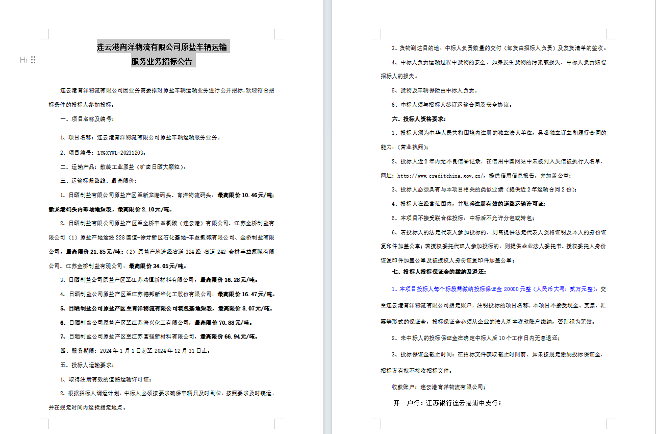 連云港宵洋物流有限公司原鹽車(chē)輛運(yùn)輸服務(wù)業(yè)務(wù)招標(biāo)公告