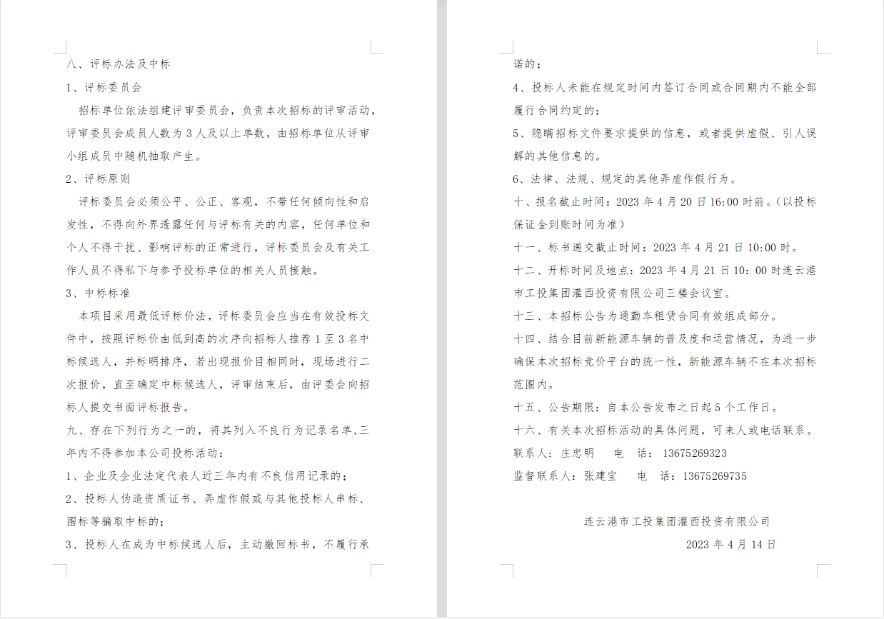 連云港市工投集團(tuán)灌西投資有限公司 員工上下班通勤車輛租賃項(xiàng)目公告