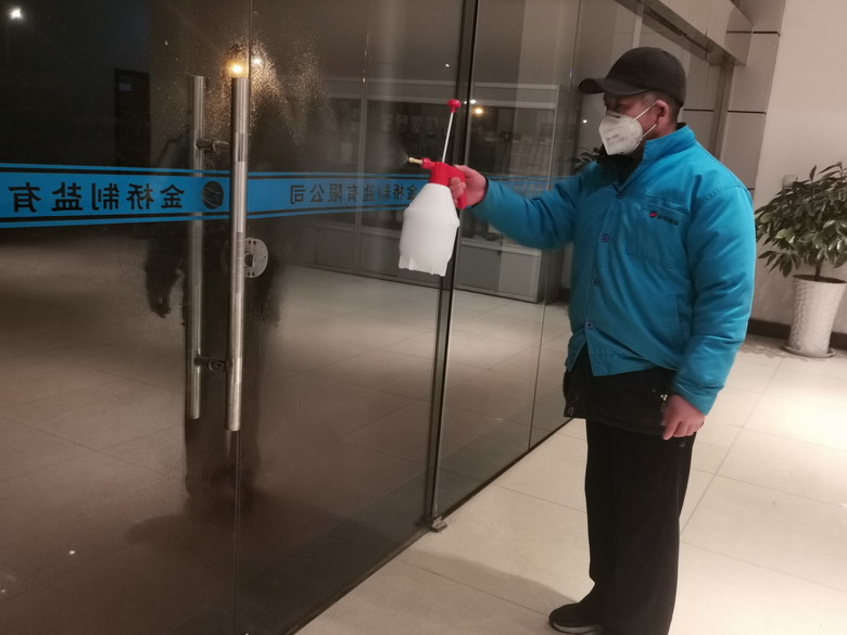 強化工作落實。按照疫情防控需要,采購口罩、酒精、噴壺、洗手液、消毒液、一次性手套、體溫測量儀等防控物品,發(fā)放給春節(jié)值班人員,要求加班員工和外來人員必須佩戴口罩,經(jīng)測量后體溫正常方可進廠;安排值班人員對辦公樓出入口、打卡室、外來車輛按要求進行消毒,要求對公司通勤車每天按照要求進行必要的消毒,保持員工上下班期間的衛(wèi)生安全。