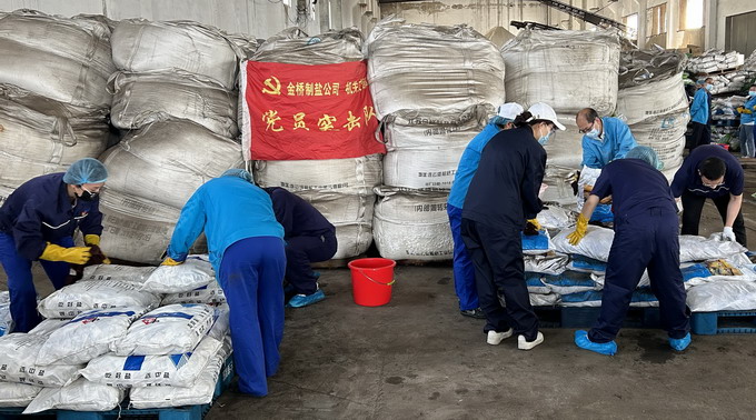 6月6日-6月7日,我公司黨委開展“我為黨旗增光添彩”志愿服務(wù)活動。機關(guān)支部共30名黨員協(xié)助車間整理庫房,共整理成品鹽130余噸?;顒拥拈_展進一步發(fā)揮了“兩個作用”,積極踐行了志愿服務(wù)精神,為車間一線辦實事、解難題。(金宣)