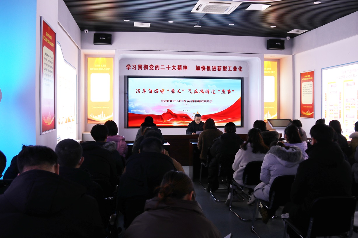 把“廉關(guān)”,過(guò)好迎新“廉潔年”。清心為治本,直道是身謀。金融板塊從金融領(lǐng)域的特殊性出發(fā),本著廉政談話(huà)全覆蓋的原則,緊盯春節(jié)節(jié)點(diǎn)、緊盯常見(jiàn)“節(jié)日病”,要求黨員干部以上率下,嚴(yán)格要求自己、嚴(yán)格帶好隊(duì)伍,守好責(zé)任田,管好身邊人,做到過(guò)節(jié)不忘警惕,過(guò)節(jié)不忘紀(jì)律,過(guò)節(jié)不忘盡責(zé),嚴(yán)格執(zhí)行中央八項(xiàng)規(guī)定,時(shí)刻保持自省、自警、自律、自勵(lì),清廉過(guò)節(jié),堅(jiān)決杜絕“節(jié)日腐敗”。