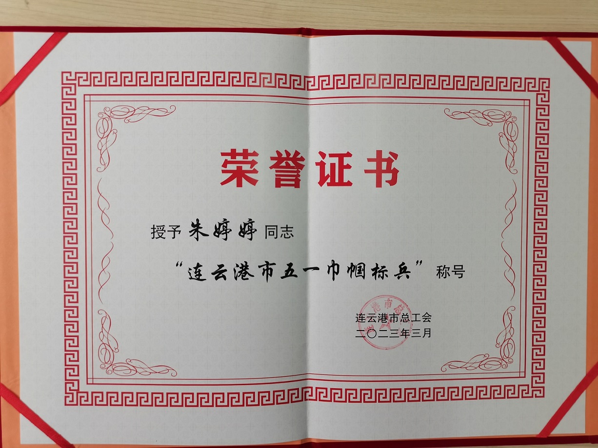 五一勞動節(jié)來臨之際,連云港市總工會下發(fā)獎勵通知,授予格斯達(dá)擔(dān)保公司風(fēng)險部副經(jīng)理朱婷婷“五一巾幗標(biāo)兵”稱號!