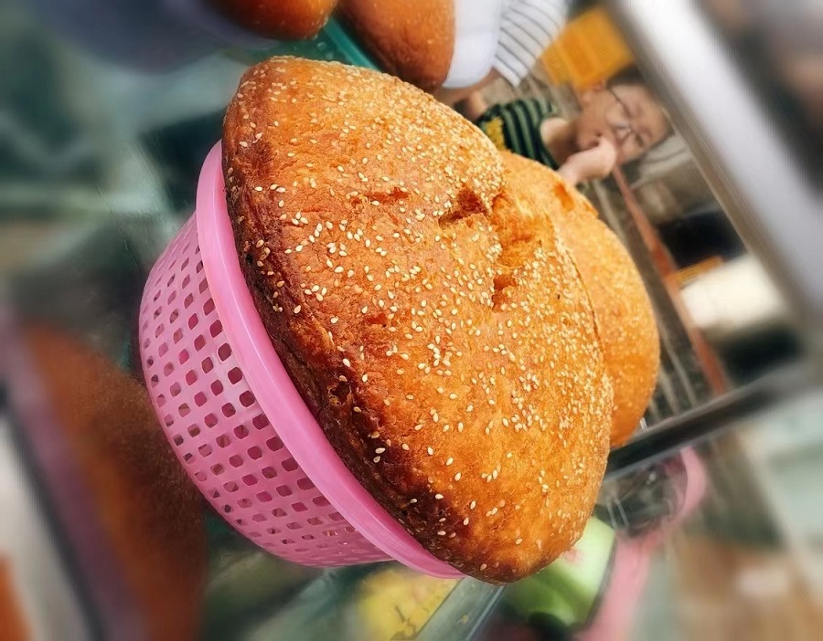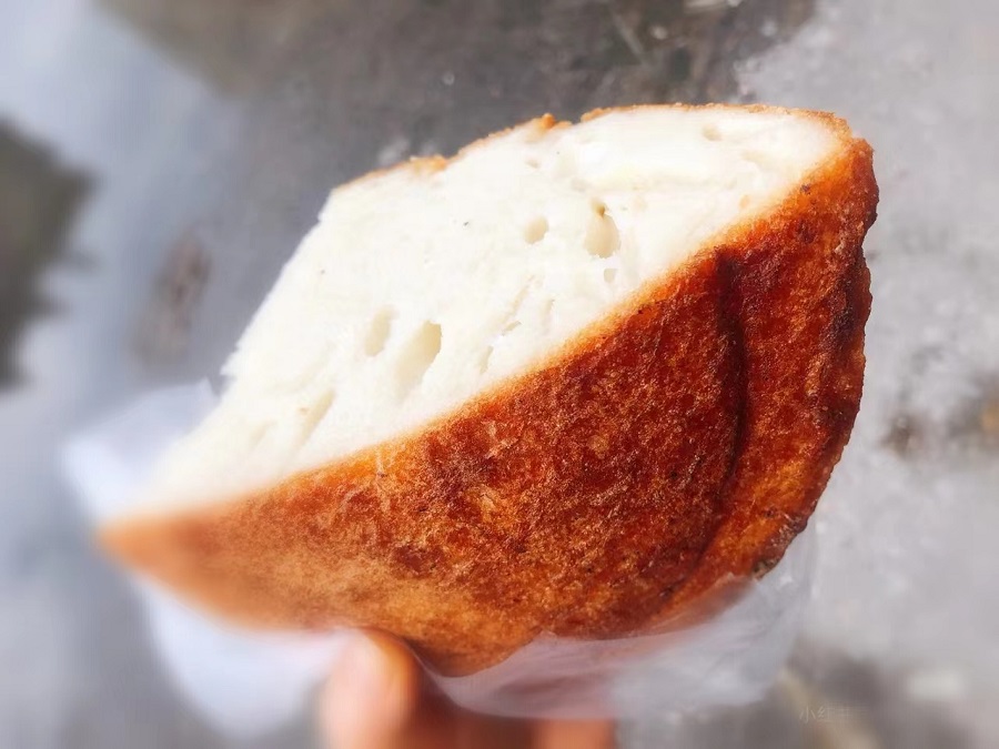 它的做法看似簡單,其實(shí)非??剂恐鲖D的功底。面粉加入老酵,放在暖和的地方讓其自然發(fā)酵至漲滿容器。自家的土灶保持最小的火星,鍋內(nèi)刷上薄薄一層油,倒入面糊。面團(tuán)在鍋中慢慢膨脹,待一年微微發(fā)硬,變焦黃色,撒上一層薄薄的芝麻,刷上一層油,翻面繼續(xù)小火慢焗??此坪唵?,其實(shí)沒有幾年做飯功底,還真不一定能成功。一個(gè)成功的漲燒餅,外脆里軟,內(nèi)里一個(gè)個(gè)孔洞,松軟有彈性。我比較喜歡吃外皮,香脆,可口,老年人多愛吃內(nèi)里,有種老酵的清香,微甜。它真的是一款老少皆宜的美味了。