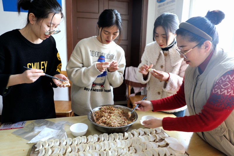 ? ? ? ?活動現(xiàn)場,大家有說有笑,默契配合,有的揉面團、有的拌餃餡、有的搟面皮、有的包餃子,大家互相切磋著包餃子的技巧,好不熱鬧,包出來的餃子也是形態(tài)各異,有元寶狀、小船狀、三角狀,還有獨具特色的花邊餃,女職工們紛紛拿著自己的勞動“成果”,擺在手心互相比較著餃子的形狀,隨著一雙雙靈巧的小手來回舞動著,在一片喜慶、溫馨的氛圍中,一個個口味不一的餃子就展現(xiàn)在大家面前。當一盤盤熱氣騰騰的餃子端上桌,食堂瞬間香氣四溢,吃著自己親手包的餃子,每個人的臉上無不洋溢著滿足、幸福的笑容。