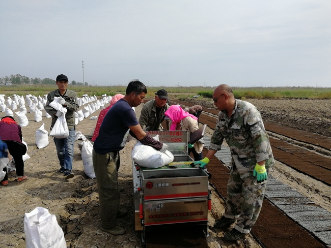 地頭播地龍育秧是最近兩年引進(jìn)的機(jī)械化育秧方式,通過覆基質(zhì)、播種、再覆基質(zhì),一次性完成播盤任務(wù),條田工之間自愿組合合作購(gòu)買播種機(jī),互相配合共同完成育秧作業(yè),大幅節(jié)約了成本、人工,減少了運(yùn)輸、擺盤期間損苗現(xiàn)象;大棚塑盤暗化育秧,條田管理工互幫互助,自行組織運(yùn)輸車輛轉(zhuǎn)運(yùn)秧苗至田頭,將轉(zhuǎn)運(yùn)時(shí)間由一天半壓縮至半天就能完成,并順帶空盤回大棚,不僅減少了轉(zhuǎn)運(yùn)時(shí)間,大大降低了運(yùn)輸成本,又促進(jìn)了職工之間團(tuán)結(jié)互助關(guān)系。