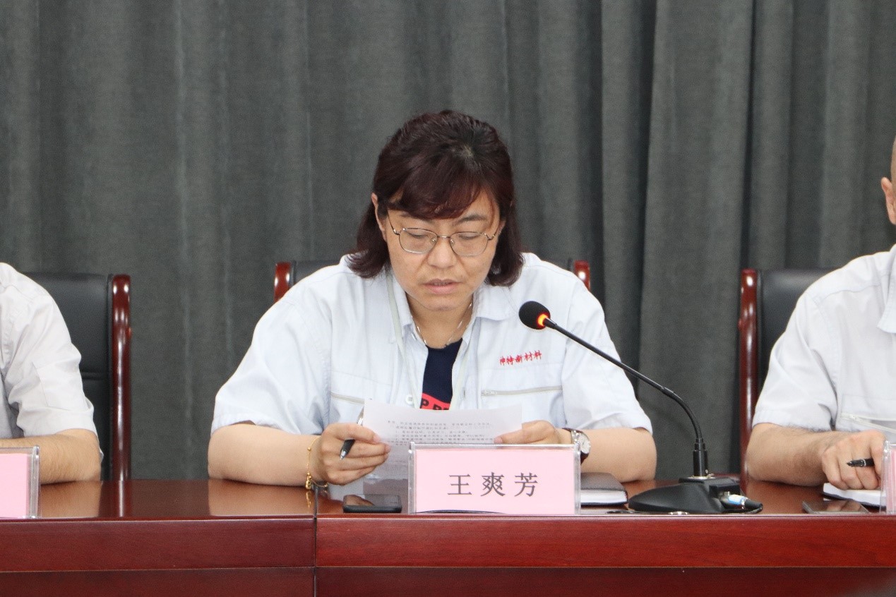 公司副總經(jīng)理王爽芳宣讀“拜師學(xué)藝,崗位成才”活動師徒責任書內(nèi)容。