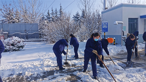 寒風(fēng)刺骨,大家的熱情很高,尤其是年輕的同事積極主動、相互配合,揮舞著鐵鍬和笤帚,有說有笑,共同努力將積雪清理到路邊。寒冷的天氣讓臉頰涌上陣陣紅暈,但心中的溫暖卻讓我們的笑容更加燦爛。行動是最好的“融雪劑”,奉獻(xiàn)是最好的“防寒衣”。