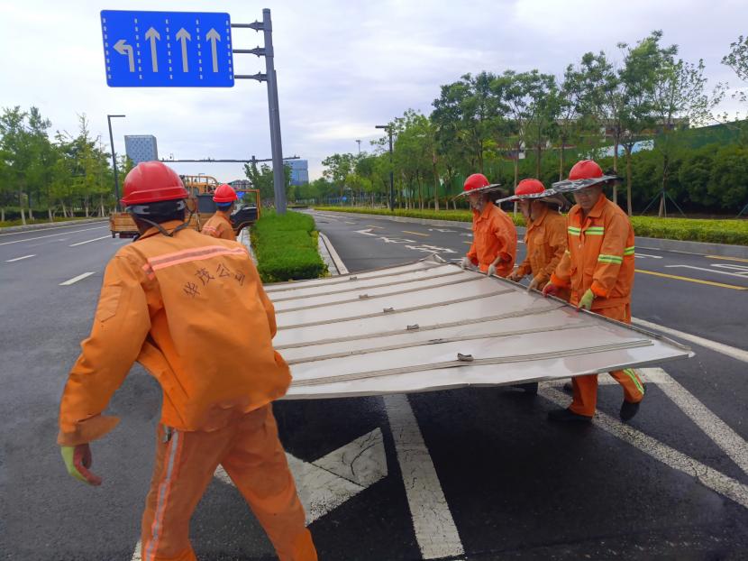 盛達(dá)市政分公司支委在“責(zé)任區(qū)”一線指揮,黨員沖鋒在前,24小時(shí)不間斷,在防汛一線筑牢“紅色城墻”,全力守護(hù)人民群眾生命財(cái)產(chǎn)安全。前后出動(dòng)車輛設(shè)備10余輛,處理道路積水20余處,應(yīng)急開放閘9次,處理12345平臺(tái)案件100余件,應(yīng)急打開圍堰4處,24小時(shí)監(jiān)護(hù)新光和花果山涵洞,緊急處理公交站臺(tái)、交通標(biāo)志牌等城市家具傾倒7處;翔立分公司多次緊急“處警”,快速修復(fù)開太閘電路等多處電力故障,保障開發(fā)區(qū)泄洪秩序。