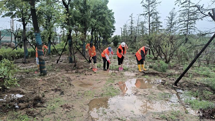 綠化分公司全力以赴筑牢汛期“安全網(wǎng)”,迅速開展應(yīng)急處理,加大現(xiàn)場(chǎng)巡查力度,及時(shí)進(jìn)行排澇清淤、樹木扶正、強(qiáng)基加固,全力排除險(xiǎn)情,保障樹木、苗木安度汛期。截至20日17時(shí),出動(dòng)巡查人員 56人次,巡查車、高架車、貨車等車輛 24車次,扶正移栽倒伏樹木 70 株,修剪斷枝 12株,加固支撐168株。對(duì)云池路、玉竹路、匯晶路等22處路段排澇清淤,及時(shí)消除轄區(qū)內(nèi)安全隱患,保障了市民出行安全,鞏固了城市綠化成果。