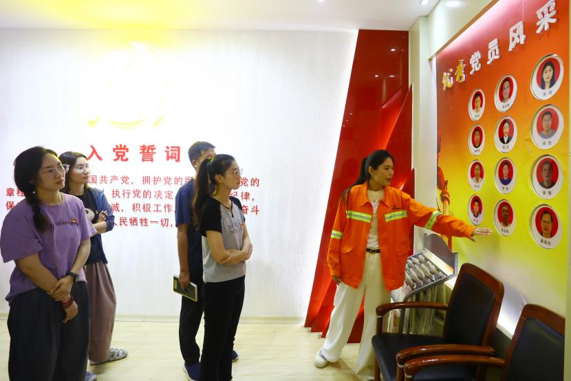與會人員先后觀摩了環(huán)衛(wèi)、綠化分公司黨建室,環(huán)衛(wèi)分公司黃海大道班組王麗班組勞模工作室,參觀學習了綠化創(chuàng)智綠園班組三組聯(lián)建陣地建設及黨建特色工作,隨后一行觀摩了綠化分公司支委會工作例會。