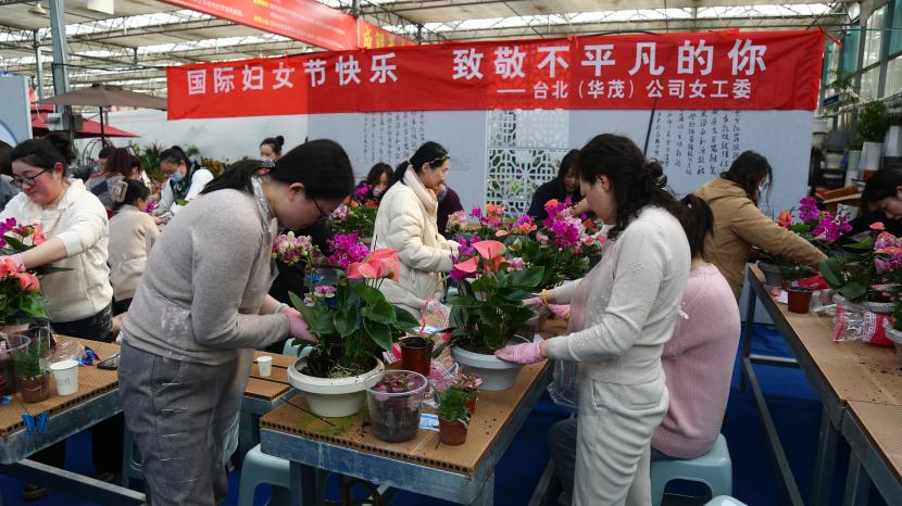 ? ? 情暖三月,巾幗芳菲相競妍。在“三八”國際婦女節(jié)來臨之際,為展現(xiàn)公司女干靚麗風(fēng)采,豐富文化生活,3月6日下午,臺北(華茂)公司工會組織50余名女職工代表在市振興花卉城開展“國際婦女節(jié)快樂 致敬不平凡的你”慶婦女節(jié)插花活動,展現(xiàn)新時(shí)代女性風(fēng)采。