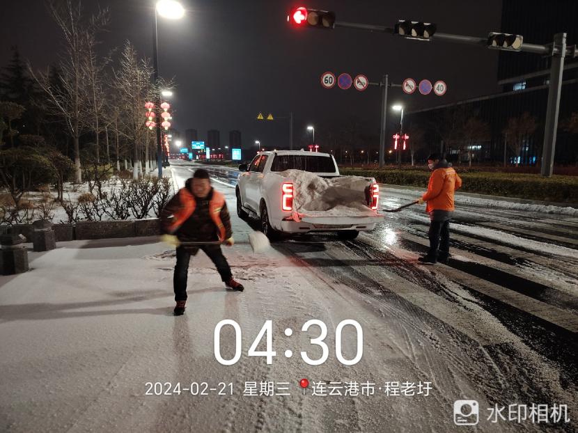? ? 2月20日晚,港城迎來又一輪降雪,低溫雨雪冰凍天氣對城市道路交通和市民出行產(chǎn)生較大影響。為確保雪天道路暢通及市民出行安全,綠化分公司聞雪而動,從2月19日晚開始,組織應(yīng)急隊(duì)伍連夜行動,在花果山大道、黃海大道等開發(fā)區(qū)主干道拋撒融雪劑,開展清雪除冰工作,掀起一場齊心協(xié)力、團(tuán)結(jié)互助的戰(zhàn)風(fēng)雪、保通暢行動。