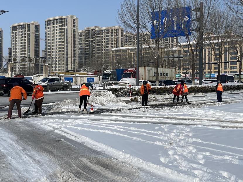 5日凌晨4點,該公司負(fù)責(zé)人于廣華已經(jīng)在除雪的第一線,積極安排工作調(diào)度,對新光路、平山路、黃海大道等重要路段突擊清掃,大家頂著風(fēng)雪,齊心協(xié)力,分工明確,高效配合,全力清除路面上的積雪和暗冰,及時為車輛和行人清理出一條條“安全路”。