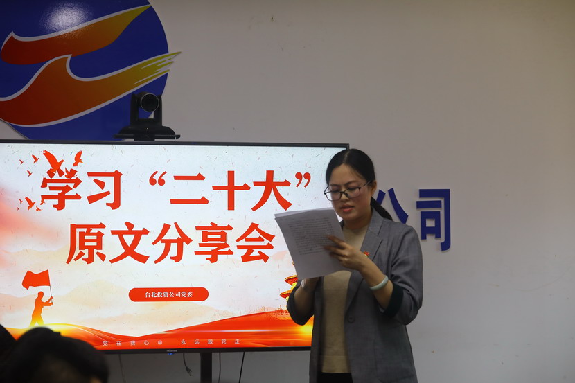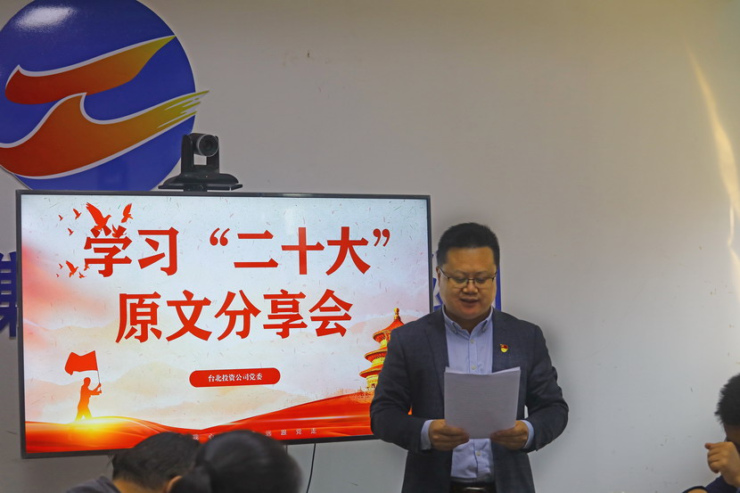10月21日,臺北投資公司黨委組織召開黨的二十大報告學習交流會,每位同志閱讀報告原文,針對報告內(nèi)容結合工作實際,分享心得體會、暢談工作思路、謀劃未來發(fā)展。