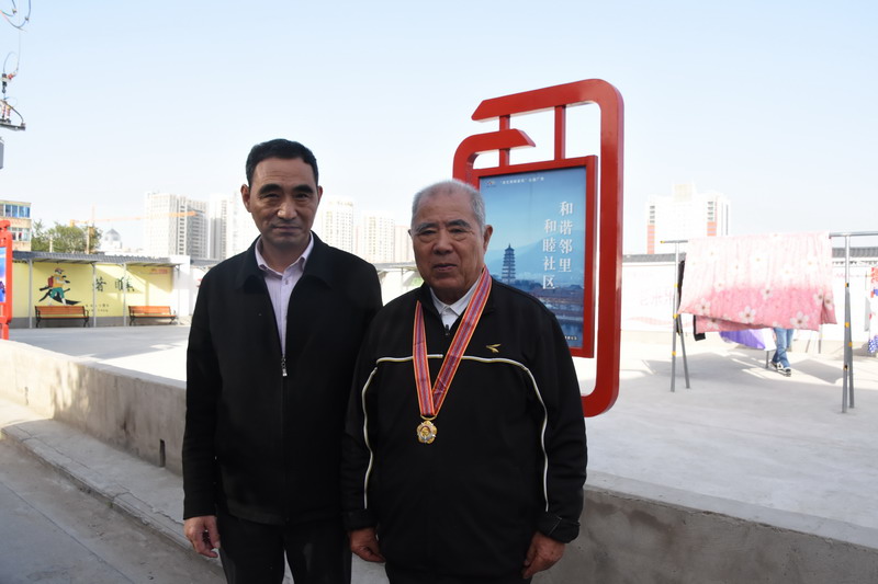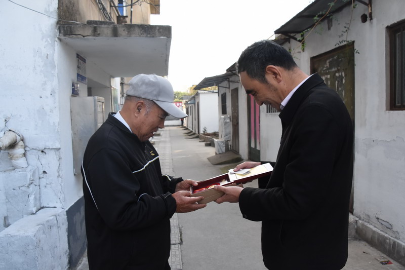 解韻波同志今年83歲,19561月參軍,那年19歲,同年6月經(jīng)過短期高強(qiáng)度培訓(xùn),作為無線電通訊兵出國抗美援朝。1959年西藏達(dá)賴集團(tuán)發(fā)動叛亂,剛回國不久的解韻波作為無線電技術(shù)兵種隨即跟隨大部隊入藏平叛。至今他仍保留著抗美援朝軍功章,入藏平叛軍功章、紀(jì)念章等。1962年退伍分配至臺北鹽場工作,1997年退休。今天慰問的時候,在鄰居們的簇?fù)砗推G羨之中,還沒進(jìn)家門,鄰居們就迫不及待地要求打開“紀(jì)念章”一睹風(fēng)采。紀(jì)念獎?wù)聮煸诶蠎?zhàn)士胸前,一眾鄰里夸贊不斷:這份榮譽(yù)沉甸甸的。這份榮譽(yù)是拿命換來的。這是不得了的榮譽(yù)啊。這樣的老兵是我們的寶貝哦,我們要尊敬啊。……就在小區(qū)活動廣場上,老戰(zhàn)士與大家暢談起保家衛(wèi)國光榮的戰(zhàn)斗經(jīng)歷,烽煙往事歷歷在目。退伍后,不褪軍人本色,幾十年如一日立足家鄉(xiāng)建設(shè),為臺北鹽場奉獻(xiàn)青春,為國家建設(shè)貢獻(xiàn)力量。大家對解韻波老戰(zhàn)士的革命戰(zhàn)斗和建設(shè)祖國的歷程表示由衷贊嘆和敬佩。