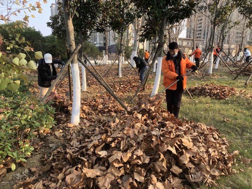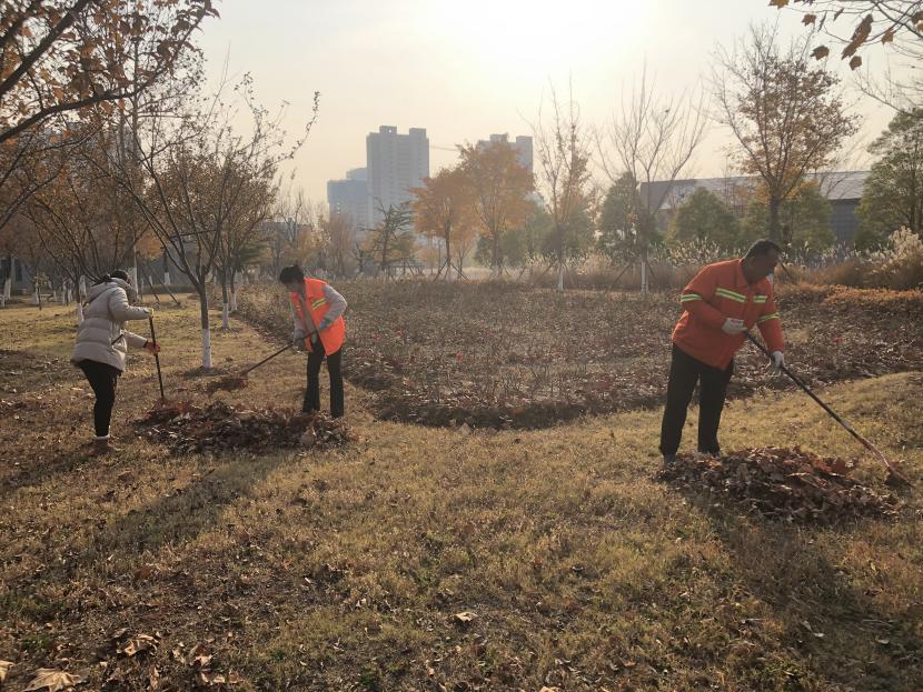活動(dòng)現(xiàn)場(chǎng),黨員同志、積極分子分為兩撥,分別從創(chuàng)智綠園北門和東門對(duì)園內(nèi)雜草落葉進(jìn)行清除。在戴好手套,做好防護(hù)、防凍措施的同時(shí),紛紛拿著掃帚、耙子等工具,統(tǒng)籌安排、分工勞作,齊心協(xié)力,有的用掃帚掃落葉、有的用袋子裝落葉、有的用耙子摟落葉……大家忙得熱火朝天,充分發(fā)揚(yáng)不怕臟、不怕苦、不怕累的黨員先鋒本色,創(chuàng)智綠園內(nèi)處處是同志們清理雜草落葉的身影,構(gòu)成了一道亮麗的風(fēng)景線,經(jīng)過(guò)一個(gè)多小時(shí)的辛勤勞動(dòng),兩撥隊(duì)伍順利“會(huì)師”,沿途雜草落葉被清理得干干凈凈,公園環(huán)境也得到明顯改善。