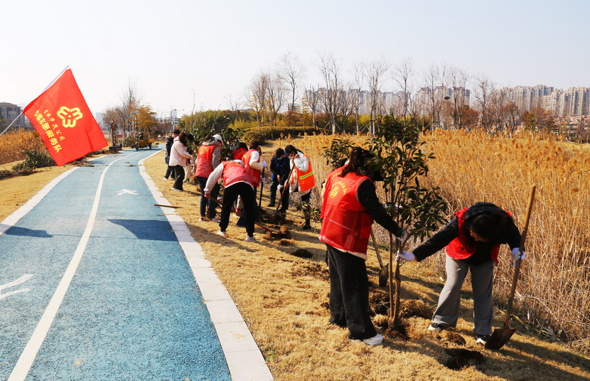 ? ? 都說女人能頂半邊天,不僅在工作上獨(dú)當(dāng)一面,掄起鐵锨來也有“女漢子”的風(fēng)采。在植樹活動中,女職工們齊心協(xié)力,有的搬運(yùn)樹苗、有的挖坑育樹、有的培土澆水,大大小小百余棵樹木很快就玉立在昌圩湖公園健康小路兩側(cè),為昌圩湖公園增添了一份綠意。