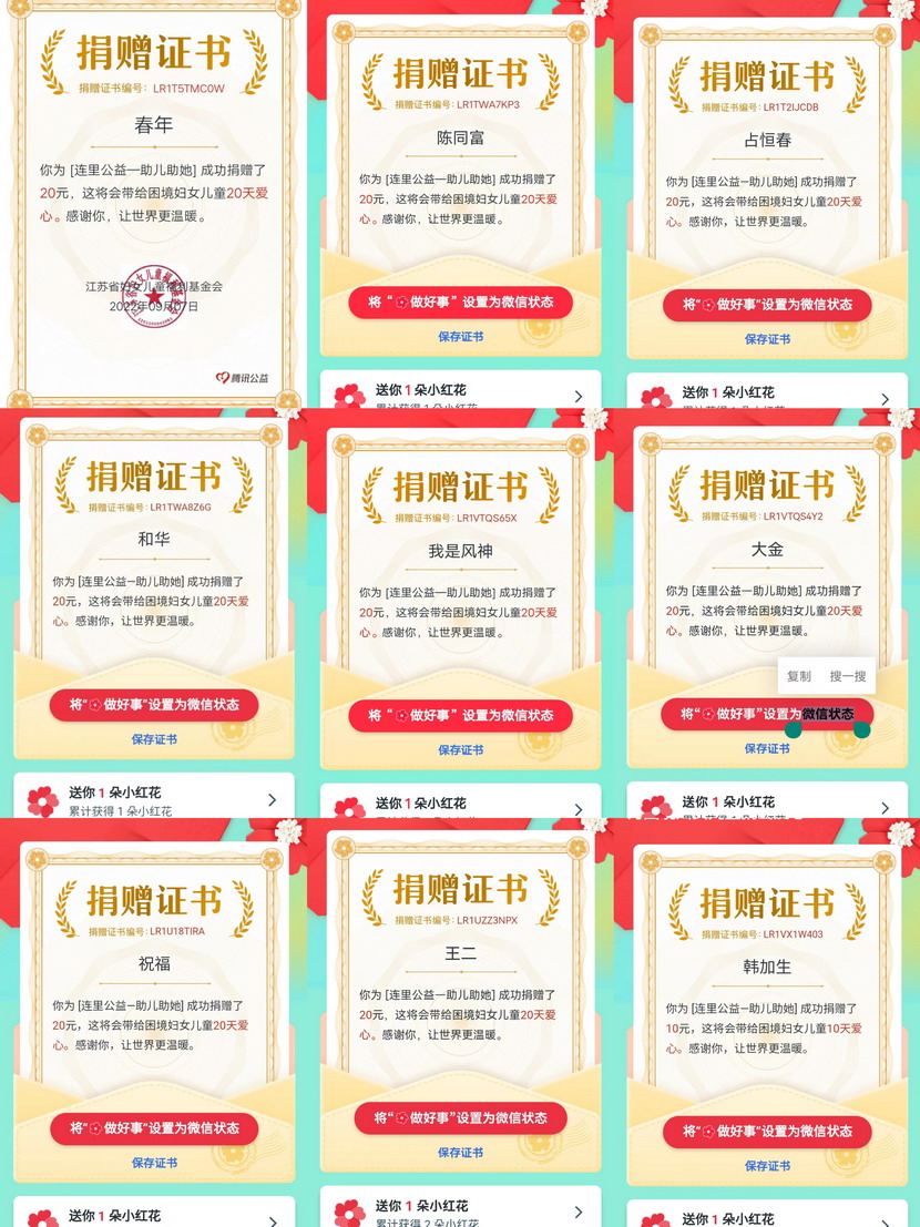 “99公益日”是響應(yīng)國(guó)家9月5日中華慈善日號(hào)召,由騰訊公司聯(lián)合數(shù)百家具有公開募集資質(zhì)的慈善組織共同發(fā)起的全民公益活動(dòng)。近年來,在海州灣公司,傳播社會(huì)正能量、弘揚(yáng)社會(huì)正氣的良好氛圍日益濃厚,涌現(xiàn)出撿數(shù)千元現(xiàn)金歸還失主的朱文健、幫扶救助中暑暈倒老人的王緒峰、免費(fèi)理發(fā)多面手霍正鋼等等數(shù)名愛心職工。在“99公益日”募捐活動(dòng)中,雖然公益平臺(tái)最低募捐金額1元即可,但是廣大職工盡力奉獻(xiàn)自己的一份力量,10元20元比比皆是,氣氛十分熱烈。大家紛紛表示,奉獻(xiàn)愛心、扶貧濟(jì)困是每個(gè)社會(huì)公民應(yīng)盡的責(zé)任和義務(wù),只要人人都獻(xiàn)出一點(diǎn)“愛”,就能形成“滴水成河、匯流成?!钡陌蹴缌α?/span>!