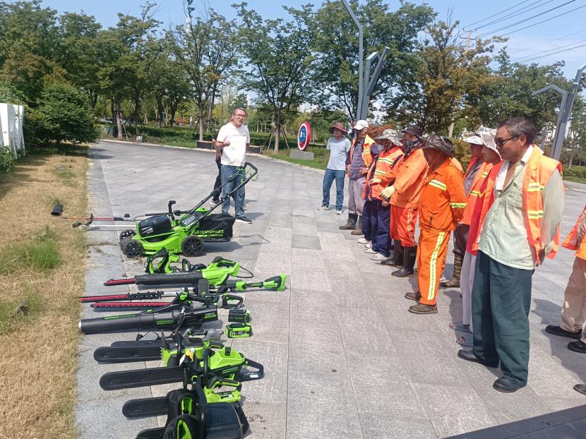 8月16日,創(chuàng)智綠園內(nèi)綠意盎然、生機(jī)勃勃。為積極響應(yīng)國(guó)家環(huán)保政策,提升綠化養(yǎng)護(hù)效率與質(zhì)量,綜合管理部精心策劃并組織開展了“綠化新型電動(dòng)機(jī)械展示與試用”活動(dòng)。本次活動(dòng)特別邀請(qǐng)了綠化分公司和益豐園林分公司的專業(yè)團(tuán)隊(duì)參與,共同見證了電動(dòng)綠籬機(jī)、電動(dòng)割灌機(jī)、電動(dòng)草坪機(jī)、電動(dòng)鼓風(fēng)機(jī)及電動(dòng)鏈鋸等先進(jìn)設(shè)備的風(fēng)采。