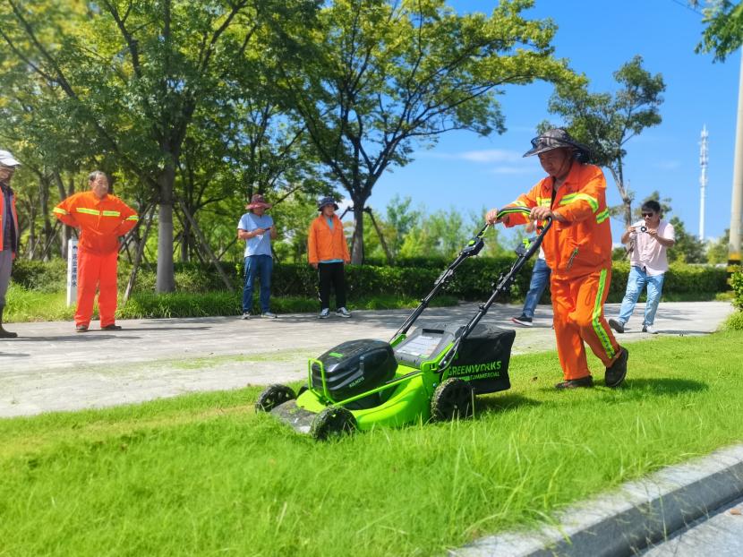 上午9時(shí)50分,活動(dòng)正式拉開帷幕。首先進(jìn)行的是設(shè)備展示環(huán)節(jié),在工作人員的講解下,了解到這些設(shè)備擁有著高效節(jié)能、操作簡(jiǎn)便、噪音低、輕便等特點(diǎn)。隨后進(jìn)入的是設(shè)備試用階段,綠化分公司和益豐園林分公司的專業(yè)技術(shù)人員輪番上陣,對(duì)各類電動(dòng)機(jī)械進(jìn)行了實(shí)地操作和演示。他們熟練地操控著機(jī)器,在綠地上留下一道道整齊的線條和一片片平整的草坪。試用過程中,大家紛紛表示,這些新型電動(dòng)機(jī)械不僅提高了工作效率,還大大降低了勞動(dòng)強(qiáng)度,對(duì)于改善工作環(huán)境和提升工作質(zhì)量具有重要意義。