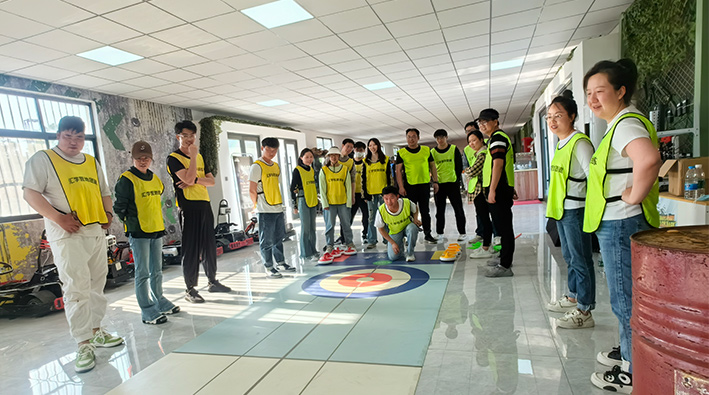 30余名青年骨干依次分成兩隊(duì)進(jìn)行團(tuán)隊(duì)拓展比賽,大家在暖場游戲破冰行動(dòng)中相互熟悉。緊接著大家按照隊(duì)伍分組開展訓(xùn)練游戲,訓(xùn)練中大家集中精力,相互扶持幫助,共同完成對戰(zhàn)。其中冰壺游戲考驗(yàn)每位青年的耐心和定力,需要瞄準(zhǔn)方向,掌握好力度,共同協(xié)作得出好成績。多個(gè)極富挑戰(zhàn)性的項(xiàng)目在大家的齊心協(xié)力下順利完成。整場活動(dòng)現(xiàn)場氣氛活躍,盡顯青春活力,比賽的形式也將本次活動(dòng)推向了高潮。